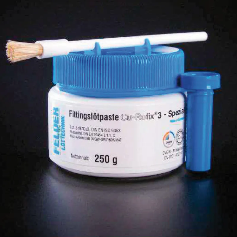 Gotova pasta za meko lemljenje za gotovo i meko lemljenje bakarnih proizvoda „Cu-Rotin®3“. Na bazi cink hlorida i amonijum hlorida u organskom sastavu.