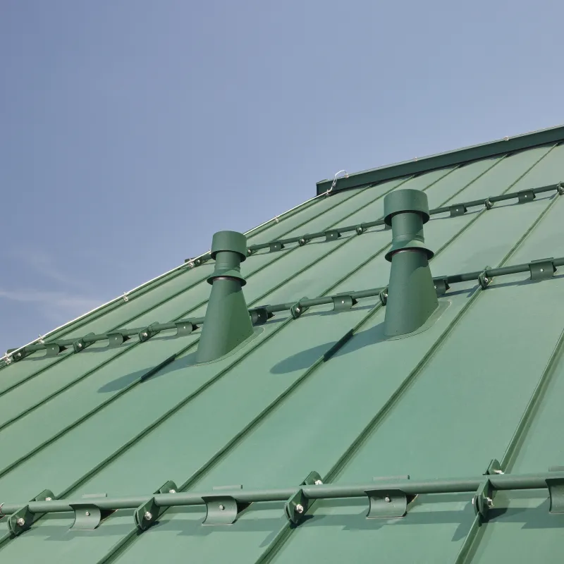 Moderan krovni dimnjak namenjen za FALZ krovove sa prečnikom ventilacije 110 i 125 mm. Napravljen od visokokvalitetnog aluminijumskog lima W.15.