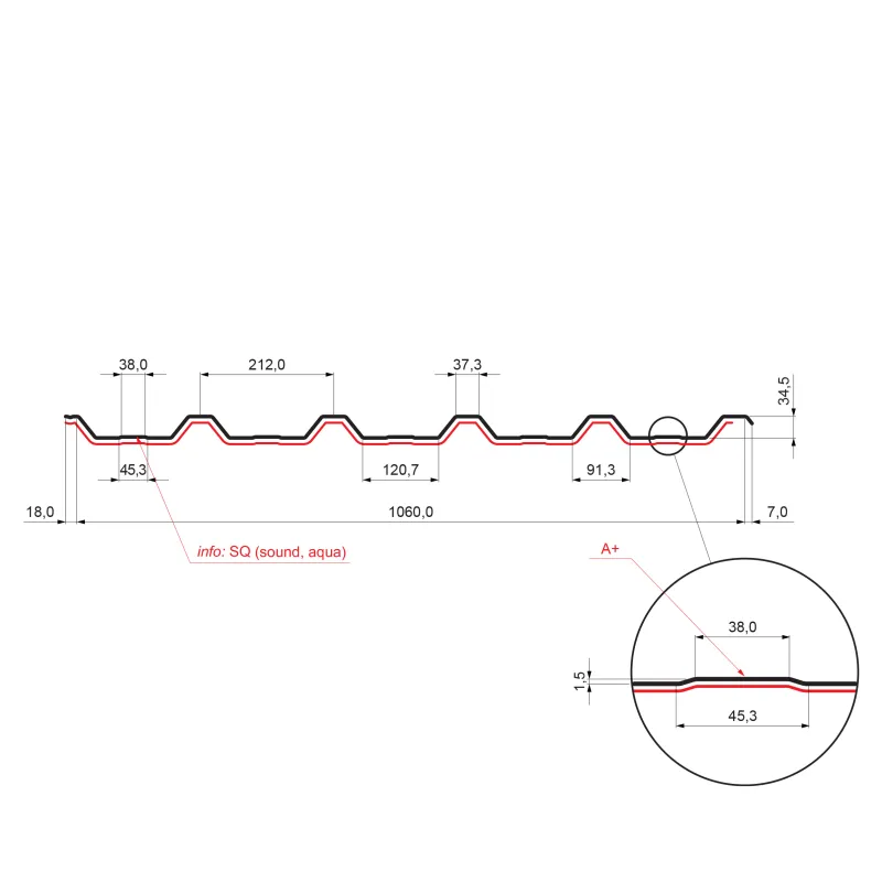 Krovni trapez TR 35A SQ (sound – aqua)