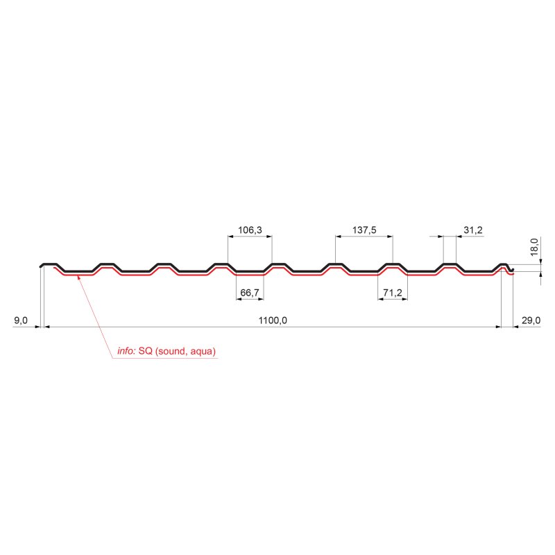 Profil TR 18A SQ je projektovan za krovnu površinu sa minimalnim nagibom od 8° bez poprečnog spoja i 10° sa poprečnim spojem, sa preklopom od min. 200 mm.