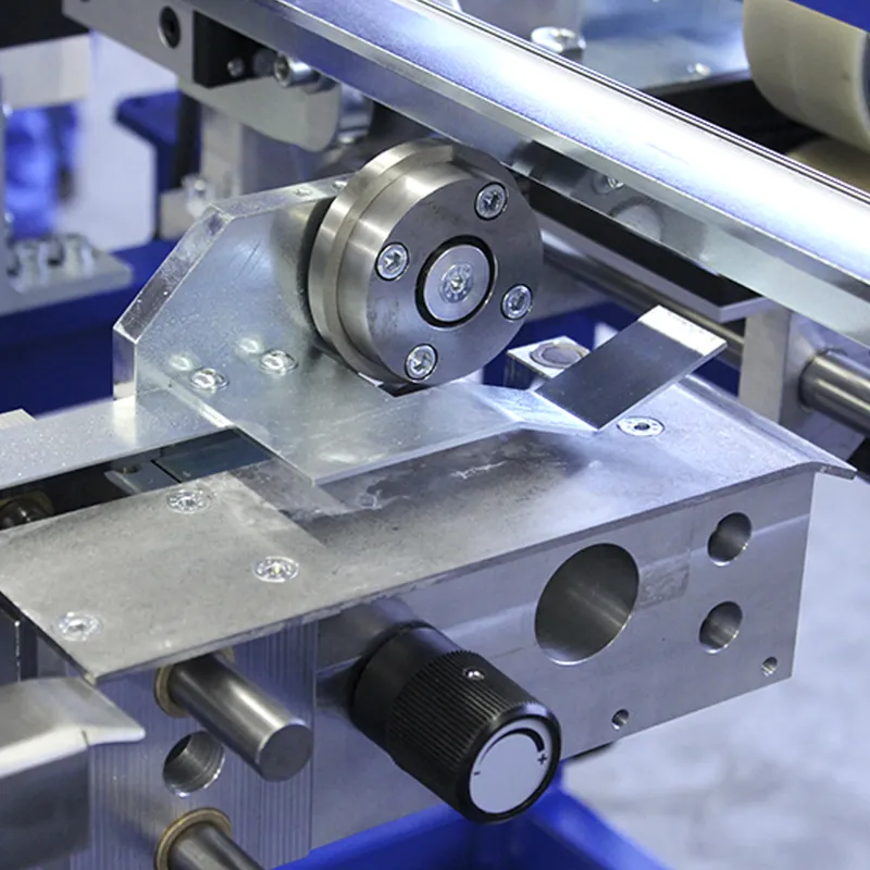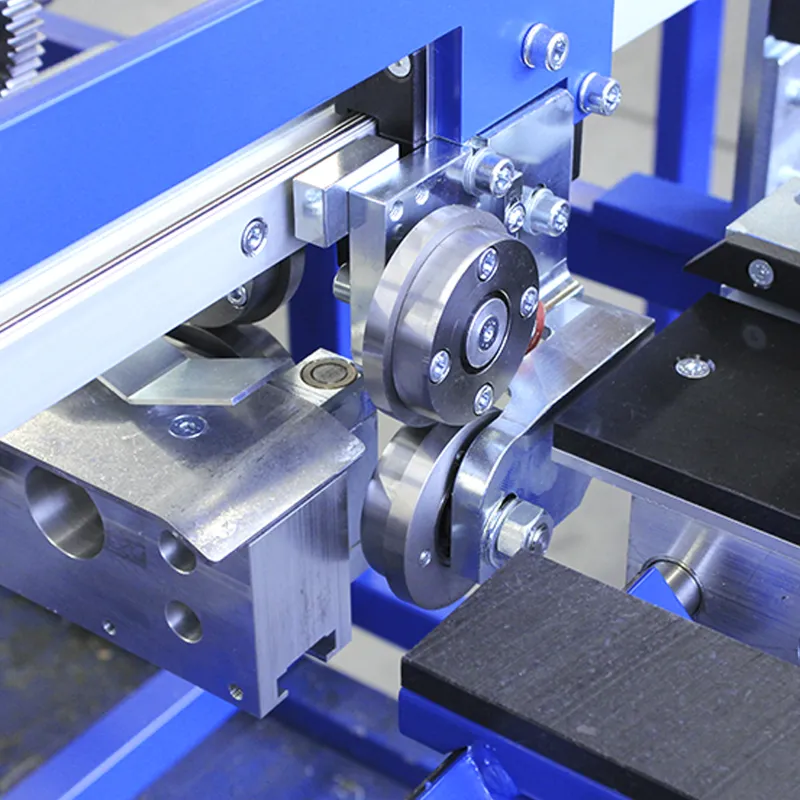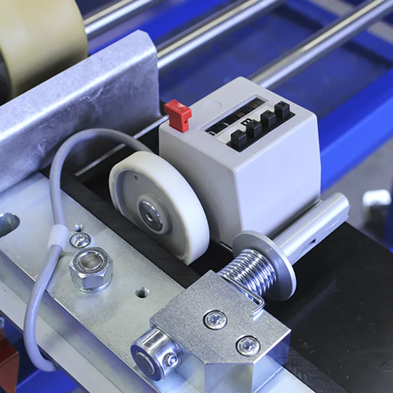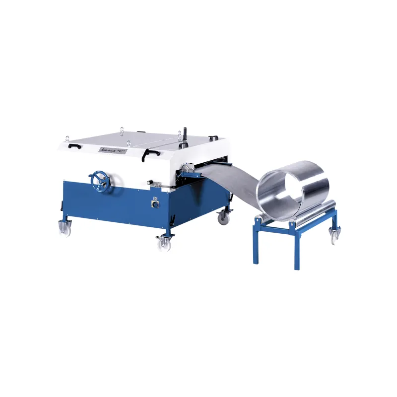 Kompaktna mašina za izradu dvostrukih stajaćih žlebnih profila 25 od praznih delova, rezanih dužina ili direktno iz rolne sa elektromehaničkim uređajem za merenje dužine sa skalom u centimetrima, pogonskim trakastim dodavačem i ručnim cilindričnim makazama za izvođenje ručnih poprečnih rezova.